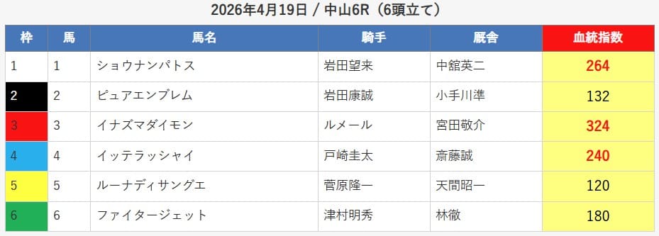 | 2026年04月19日 | 中山6R | ワイド | 〇 | 6,200円 |