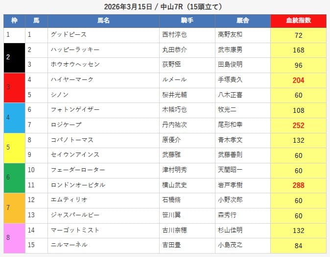 | 2026年03月15日 | 中山7R | ワイド | 〇 | 5,000円 |