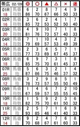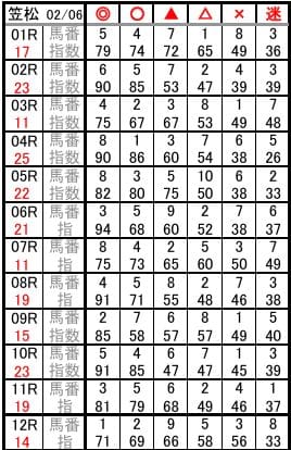 あぶの競馬予想は対象レースの指数上位6頭を印付きで公開するスタイルです。