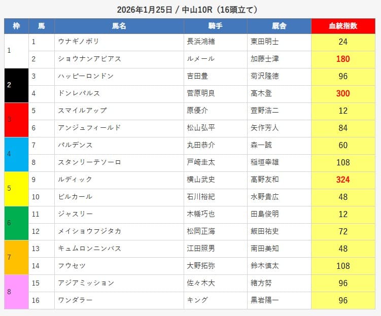 - 2026/01/25 中山10R ワイド 9,800円的中