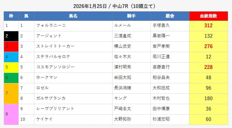 - 2026/01/25 中山7R ワイド 14,600円的中