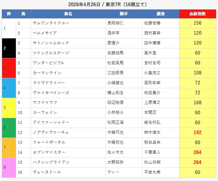 血統データAI指数から、土曜中山7Rで馬券どう買うか迷って、面倒だから赤指数3頭の三連複1点3000円勝負。そのまま推奨3頭で決まって無事的中。43500円払い戻しきました。1勝クラスでドンピシャ的中には感動した。でもそれなら三連単厚めにいけばよかったと少し後悔。次はデカいのお願いします。