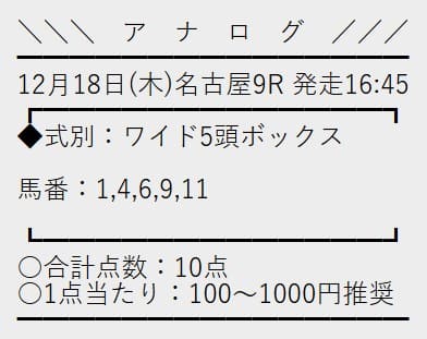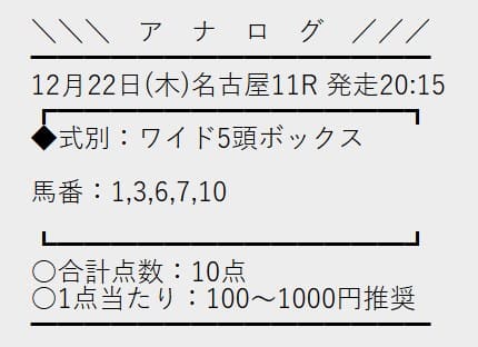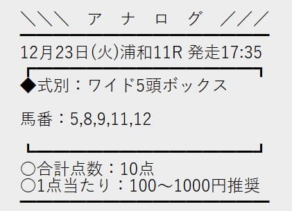 アナログの無料予想2回目の検証は、2025年1月9日 園田11Rです。