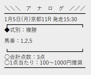 アナログの無料予想で最初に検証するのは、1月5日 中山11R。