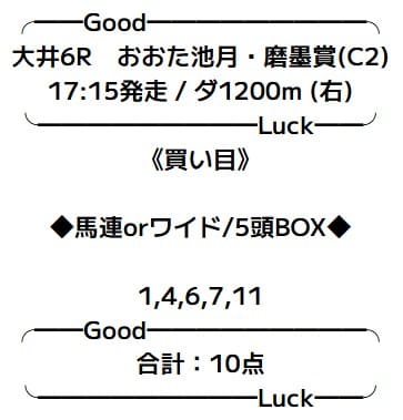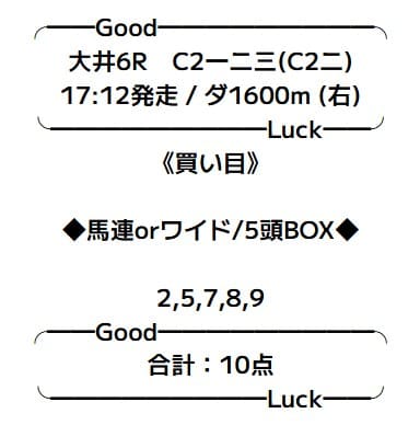 - 10/23 大井6R ワイド 2,540円的中