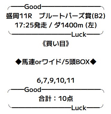 - 10/26 盛岡10R 三連単 214,980円的中