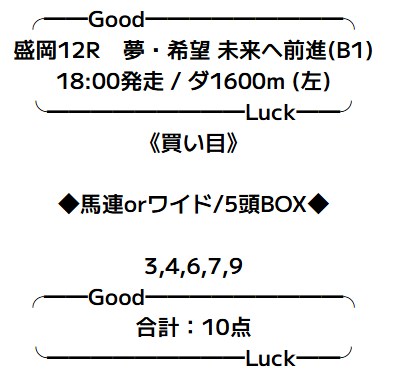 - 10/28 盛岡12R ワイド 680円的中