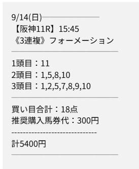 ディギン競馬が提示した買い目は三連単フォーメーション9点でした。