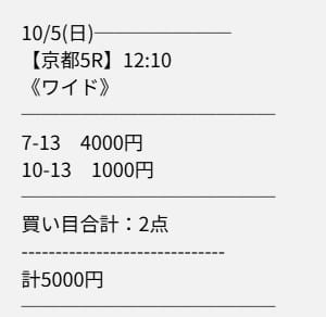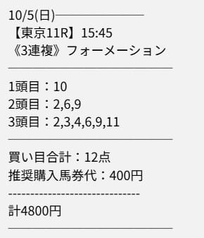 買い目は人気馬を軸に据えつつも、中穴まで押さえた構成で、「一撃高配当を狙いつつ現実的に当てに行く」予想になっていました。