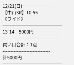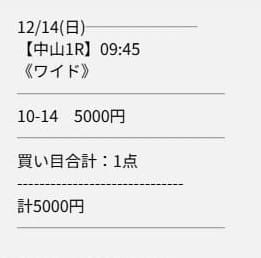 - 12/14 中山1R ワイド 7,500円的中