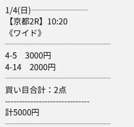 - 01/04 京都2R ワイド 9,200円的中