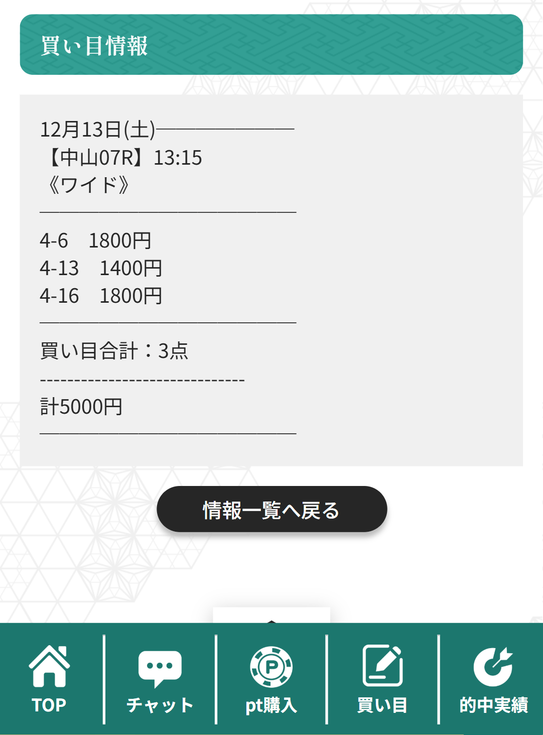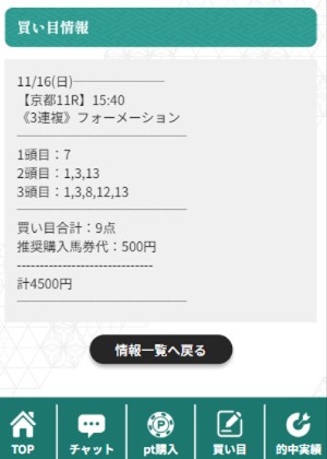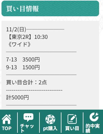 有料予想に関しては、参加費が高めなので「誰にでも気軽におすすめできる」というより、軍資金と相談しながら勝負どころを絞って使うタイプの有料予想だと感じました。