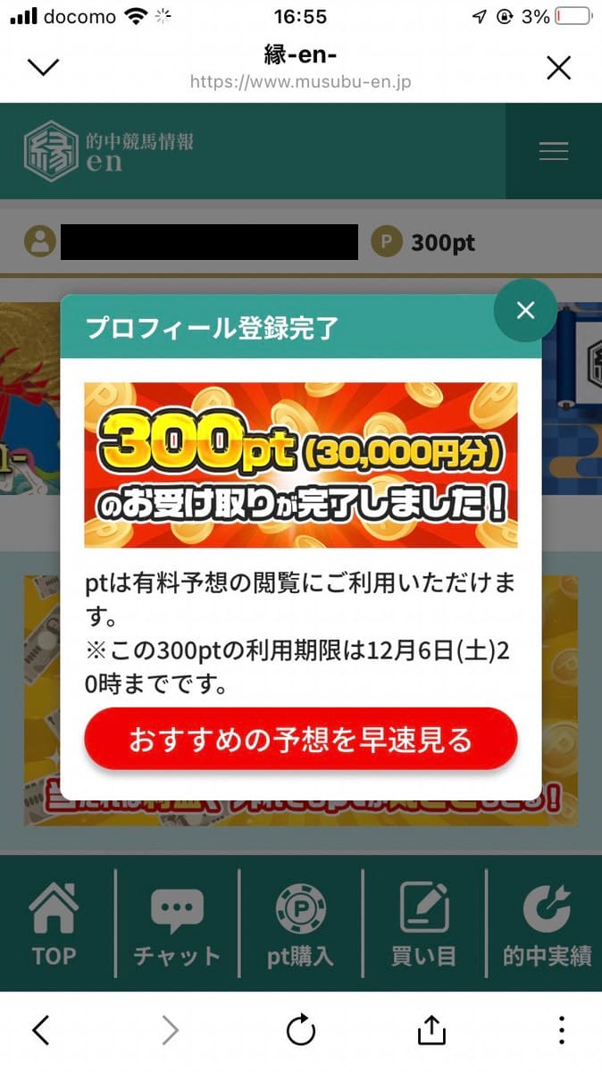 縁の良かったところは、サポートの人が本当に丁寧だったこと。わからないことを聞くとすぐ返事がくるし、説明が優しいので不安なく使えました。無料予想でプラスが続いていたときは、正直かなり信頼してました。登録特典のポイントもありがたく、有料も割引感覚で体験できました。