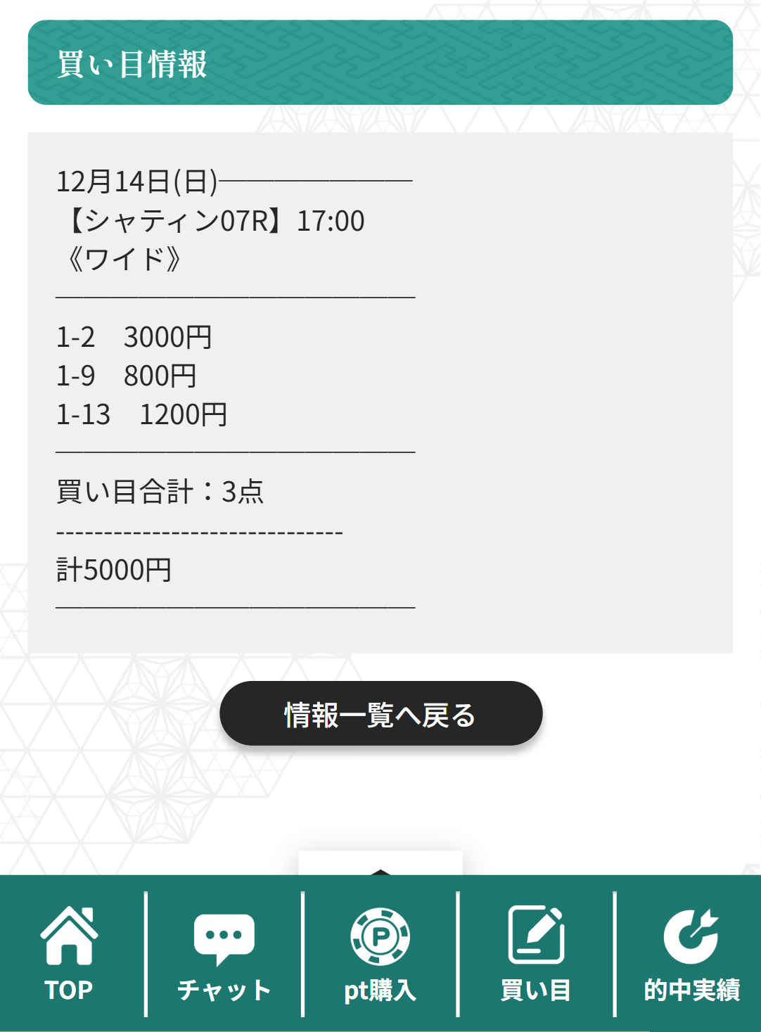 - 12/14 シャティン7R ワイド 9,900円的中
