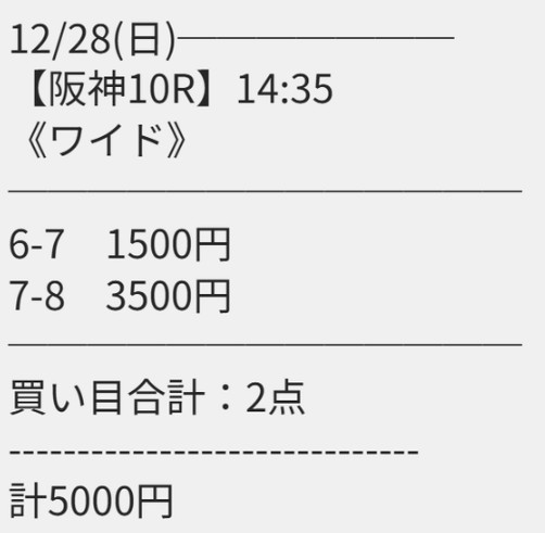 - 12/28 阪神10R 6,300円的中