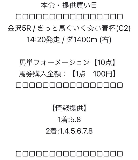 | メリット① | 的中精度・配当妙味を追求した「厳選買い目情報」 |