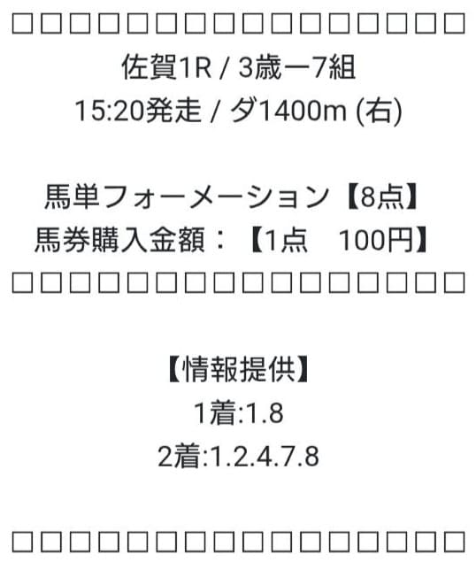 - 04/20 佐賀1R 馬単 ハズレ