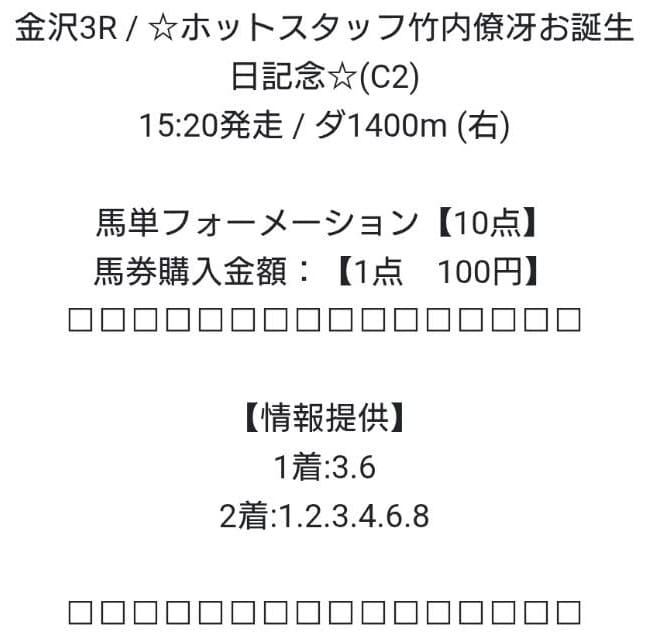 - 04/21 金沢3R 馬単 ハズレ