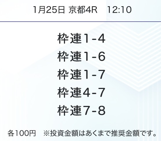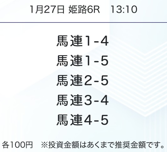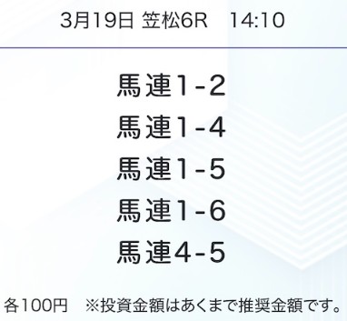 | メリット③ | 買い目がそのまま提供されるため、初心者でも迷わず買える |