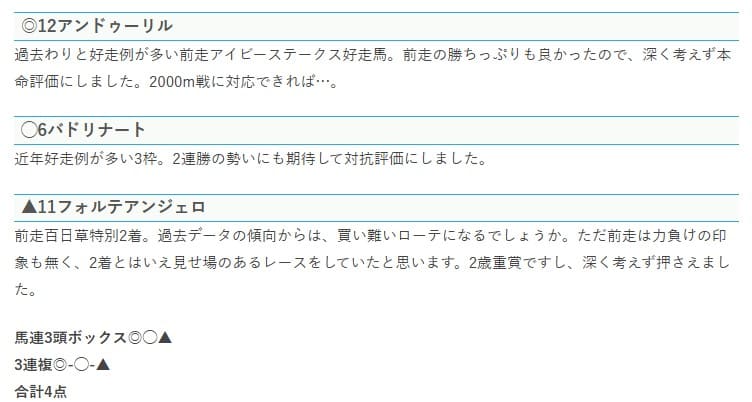 その一方で、「この4頭って分かったけど、どう買えばいいかは自分で考える必要がある」という声もあります。