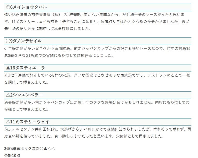 予想の公開が早めだから前もって準備できるのがいい。重賞専門だから情報量も多いけど、平場も見たかったなって思うときは正直ある。