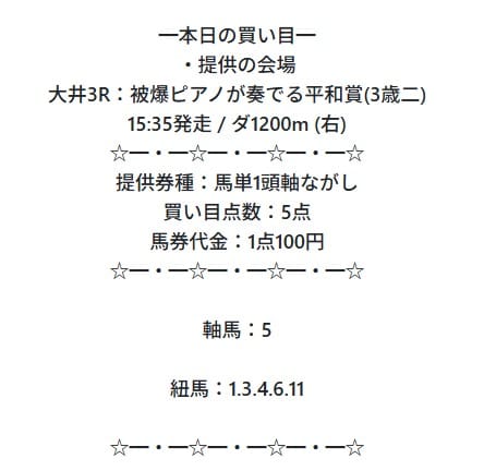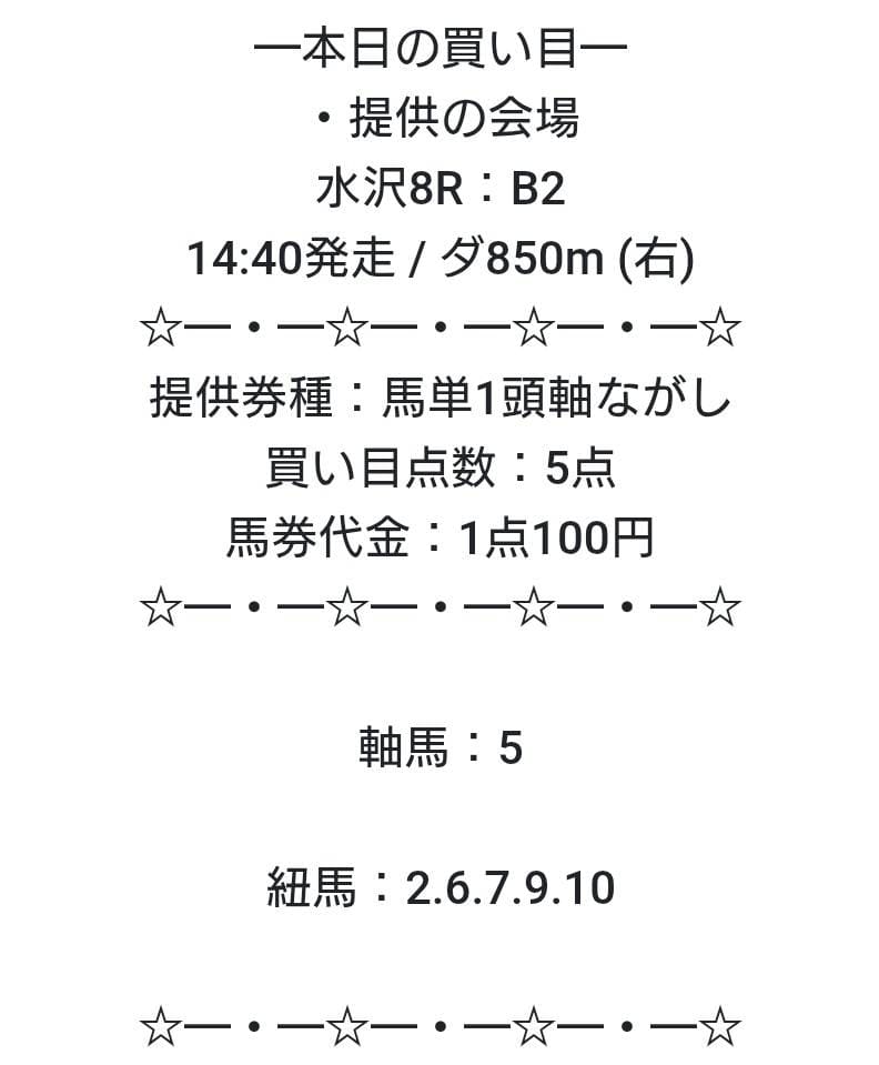 | 提供数 | 毎日1レース |
