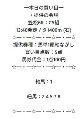 馬単5点だけなので、競馬に慣れていなくても迷わず買えるのが魅力です。