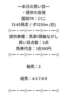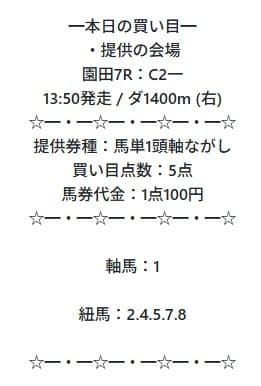 - 01/13 園田7R 馬単 ハズレ