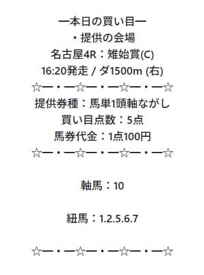 - 01/16 名古屋4R 馬単 170円的中