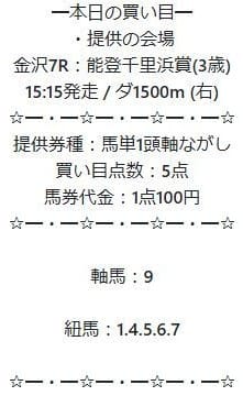 - 03/24 金沢7R 馬単 ハズレ