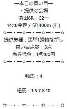 | 予想ロジック | プロ馬券師による予想提供 |