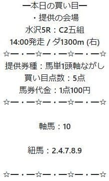 買い目の指示通り、馬単5点を1点100円、合計500円分の馬券を購入しました。
