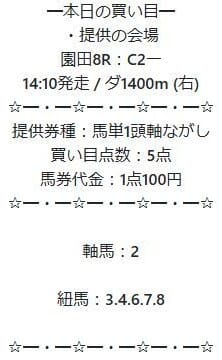 - 03/26 園田8R 馬単 ハズレ
