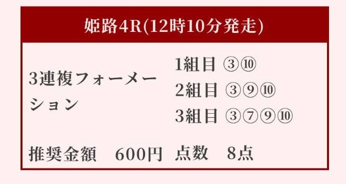 | 沢木麗華プラン | 4万円 | 25万円前後 | 三連単 | 1レース10,000円以内 |