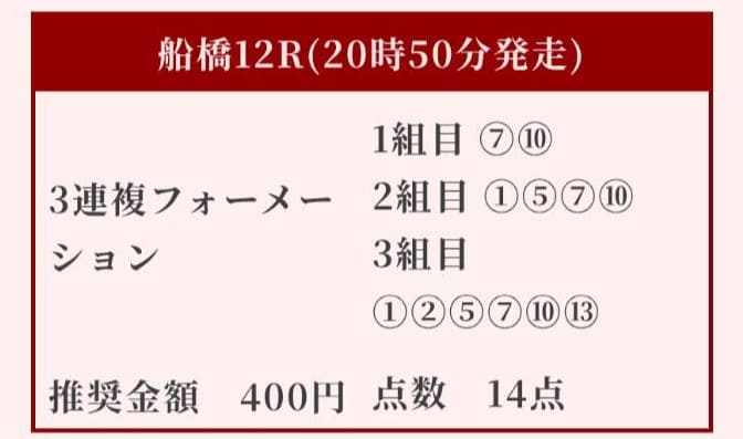 買い目の指示通り三連複フォーメーションを1点400円ずつ購入し、合計5,600円分の馬券を買いました。