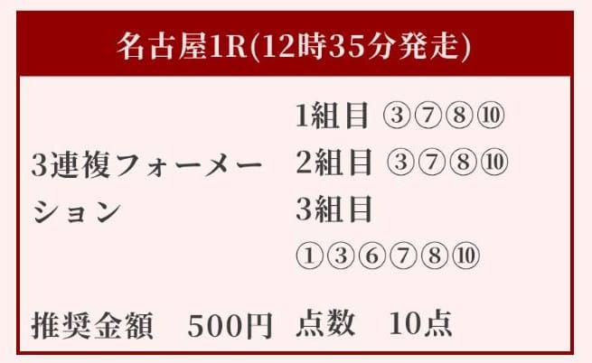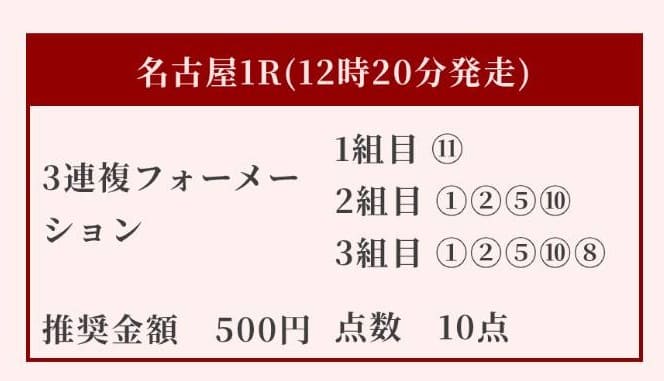 - 02/09 名古屋1R 三連複8,250円的中