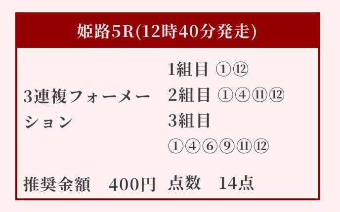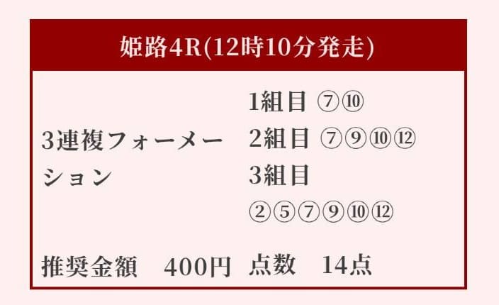 - 02/04 姫路4R 三連複2,400円的中