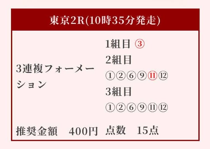 | 提供数 | 毎日3レースずつ |