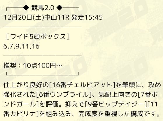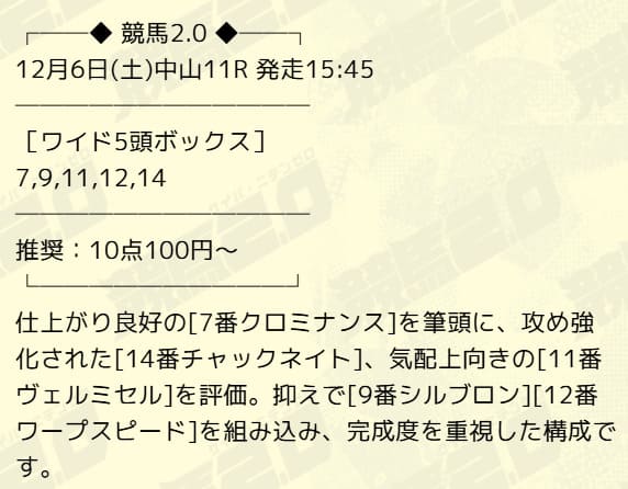 - 12/20 中山11R ワイド ハズレ
