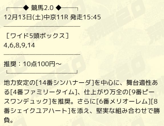 (↑競馬2.0の予想馬の詳細)