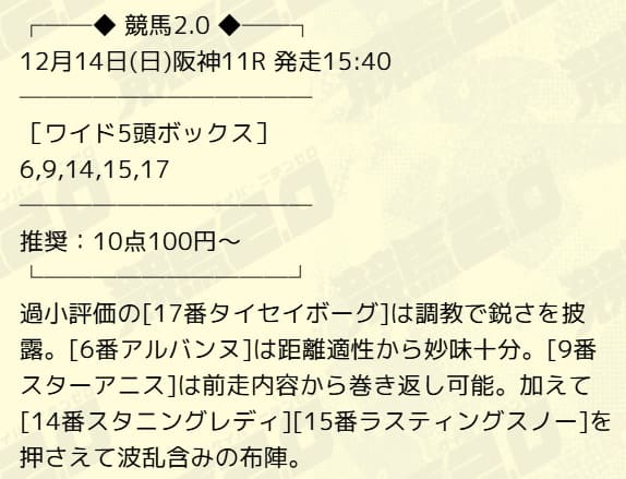 - 12/14 阪神11R ワイド 23,200円的中