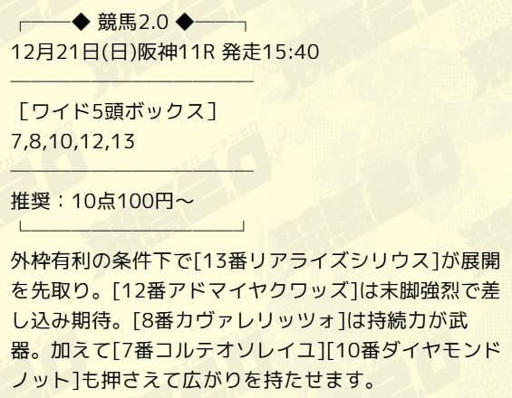 - 12/21 阪神11R ワイド 12,800円的中