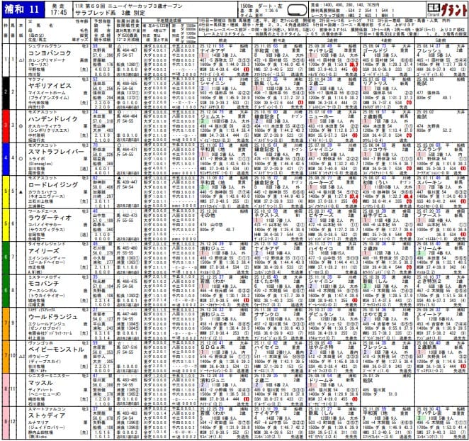 競馬グラントは、中央・地方・海外競馬の出馬表と指数予想を無料公開している情報サイトです。