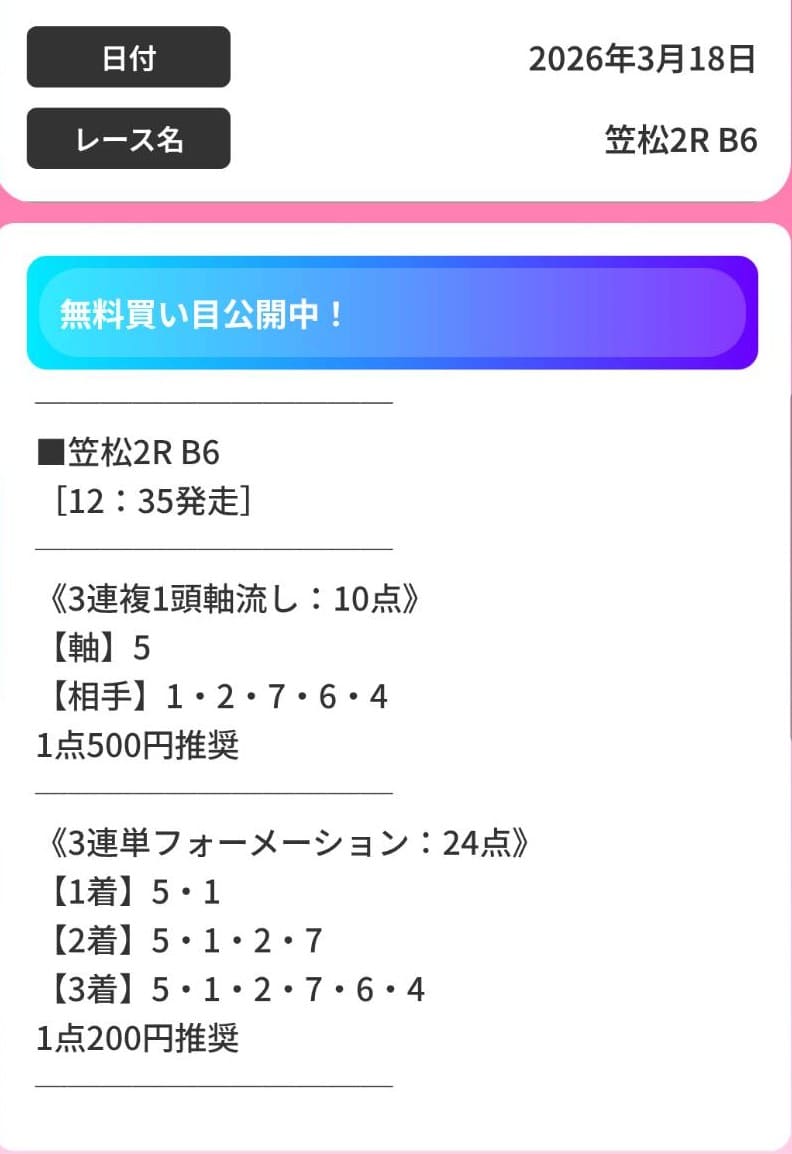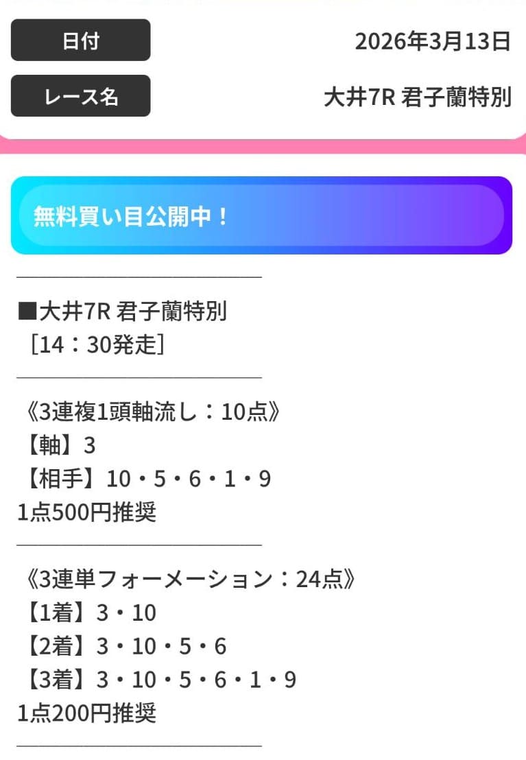 さらに、無料予想の公開時間が定まっていないので、自分が参加したい時間に使えず、使い勝手が悪い印象です。