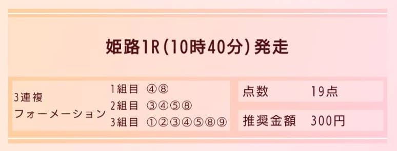 当たれば高配当が狙えそうですが、点数が広く、やや無謀にも見える買い目という印象でした。