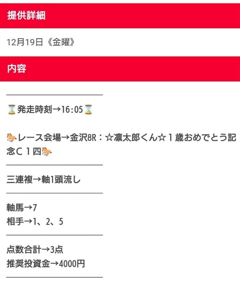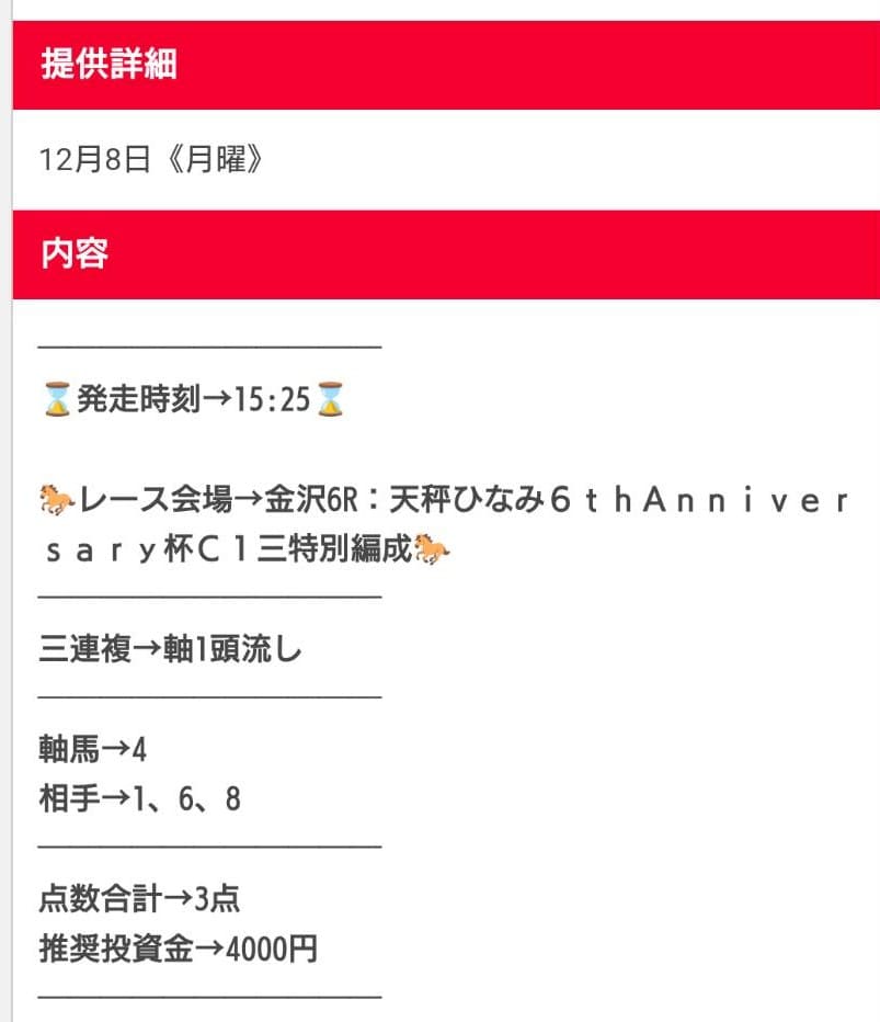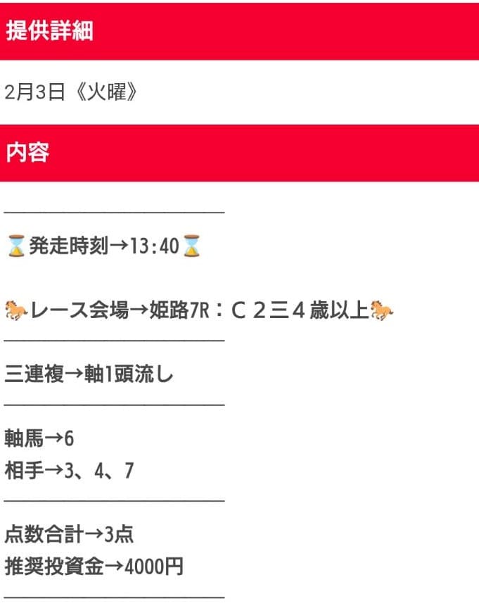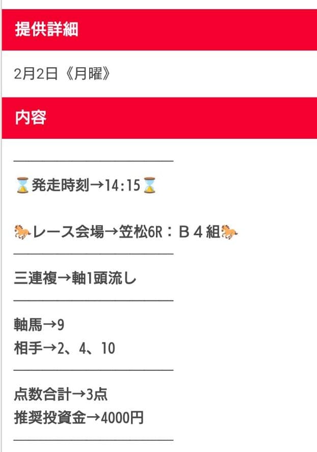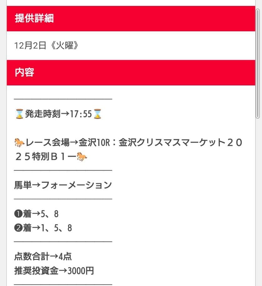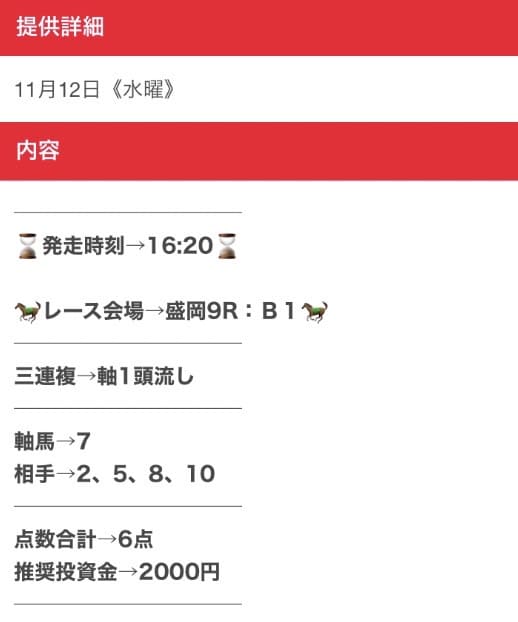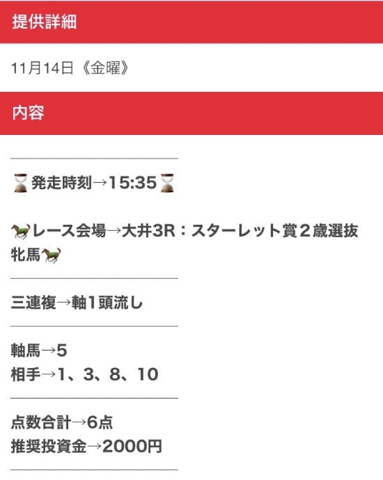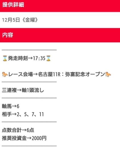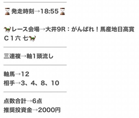 また、買い目の公開タイミングがレース直前になることが多く、仕事や用事の合間では買い逃しやすいのも不便でした。