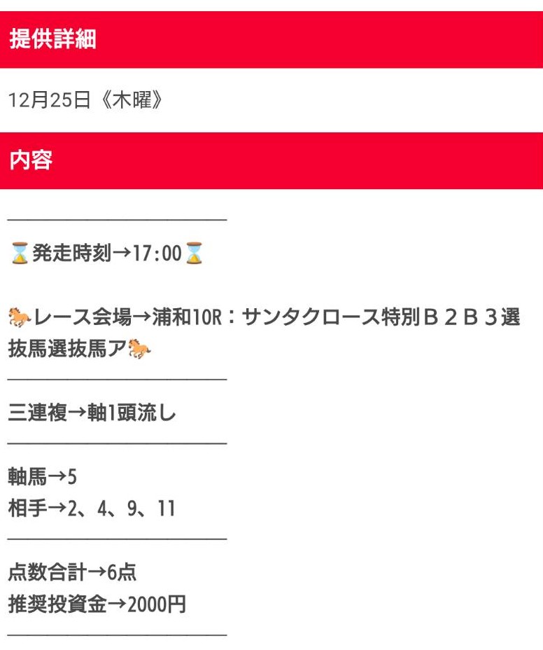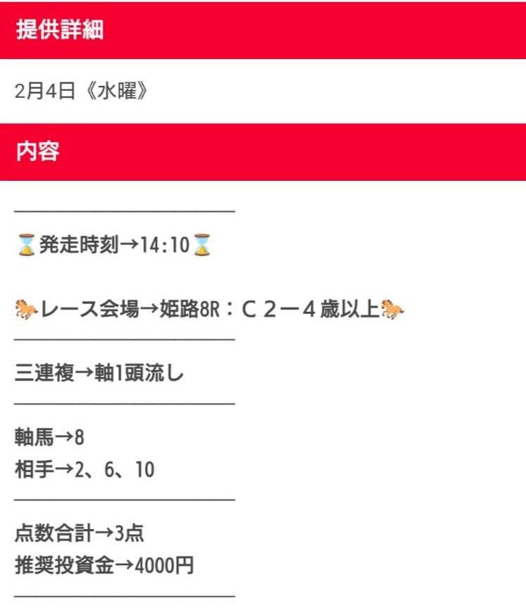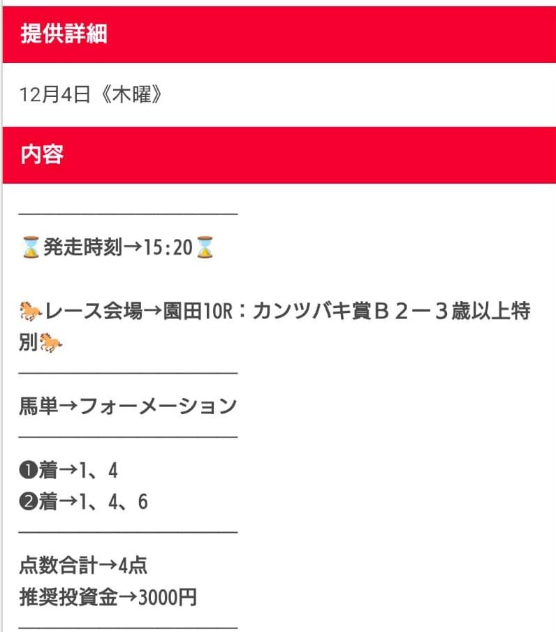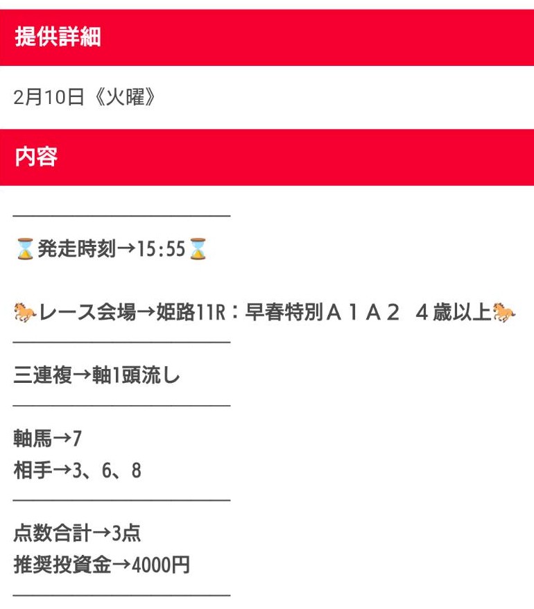 | デメリット② | 買い目の公開が直前で分かりづらい |