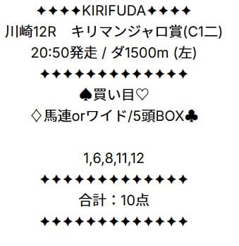 キリフダの買い目はとにかくシンプルで見た瞬間に理解できるという声が多いです。