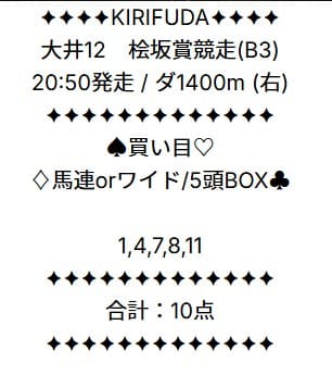 それと、買い目がレース直前に届くことが多いので、時間が合わないと買い逃すこともある点には注意。
