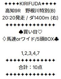 - 02/10 高知9R ワイド 7,600円的中